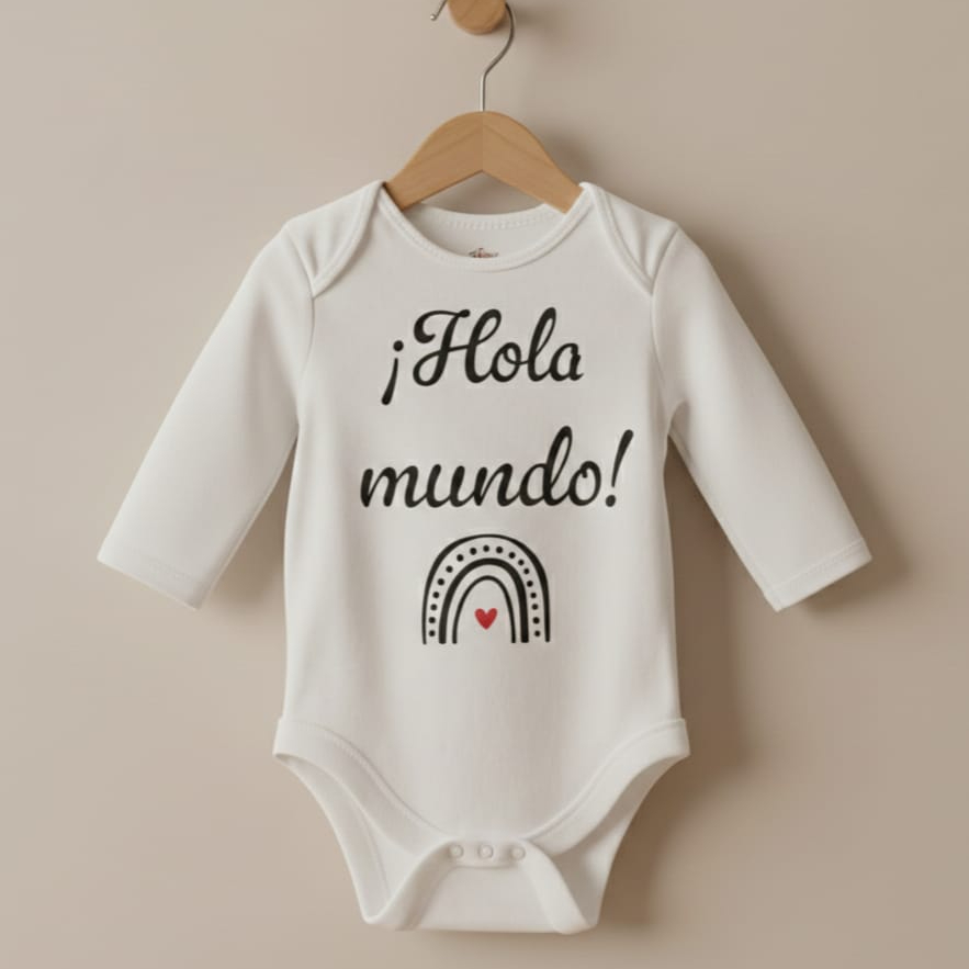 Nuestros bodys infantiles son exclusivos ya que son diseñados por nosotros. Utilizamos bodys de algodón e impresión con DTF o vinilo textil.