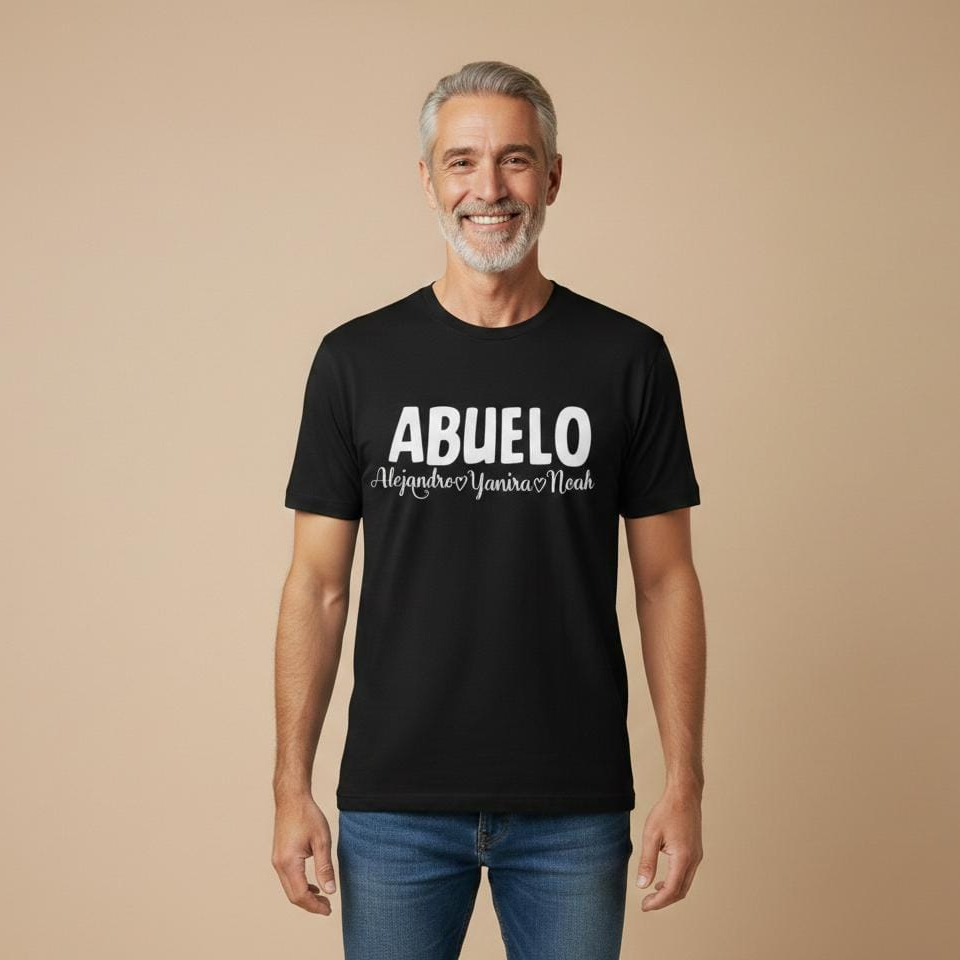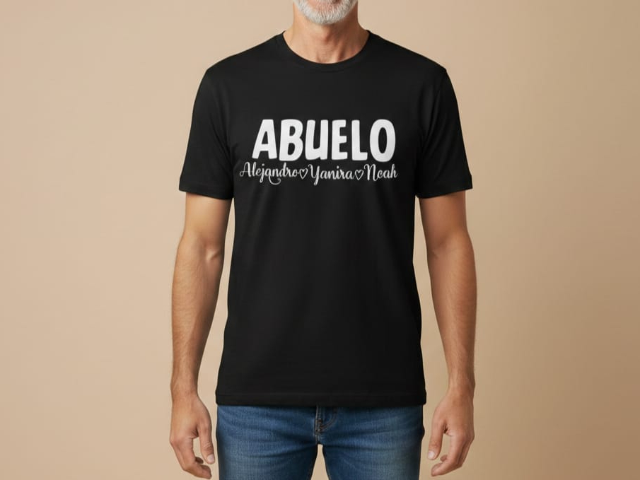 Camiseta personalizada de algodón e impresión con DTF o vinilo textil abuelo más nombres.