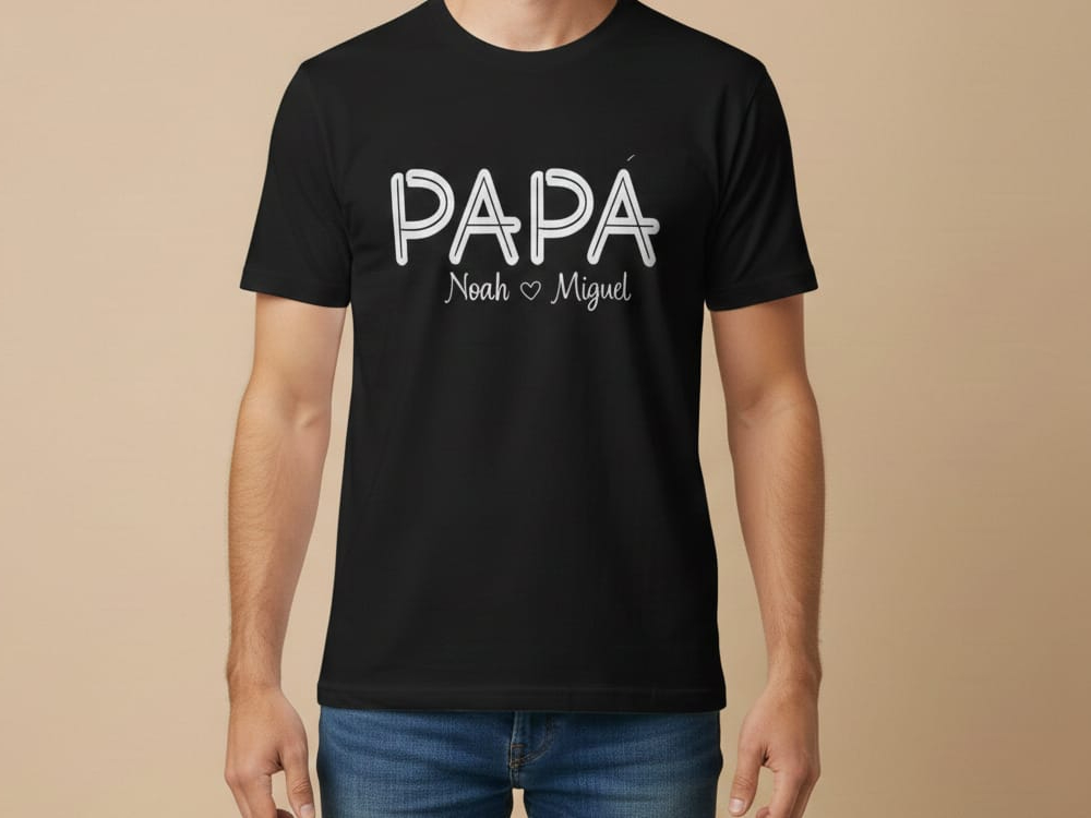 Camiseta personalizada de algodón e impresión con DTF o vinilo textil papá más nombres.