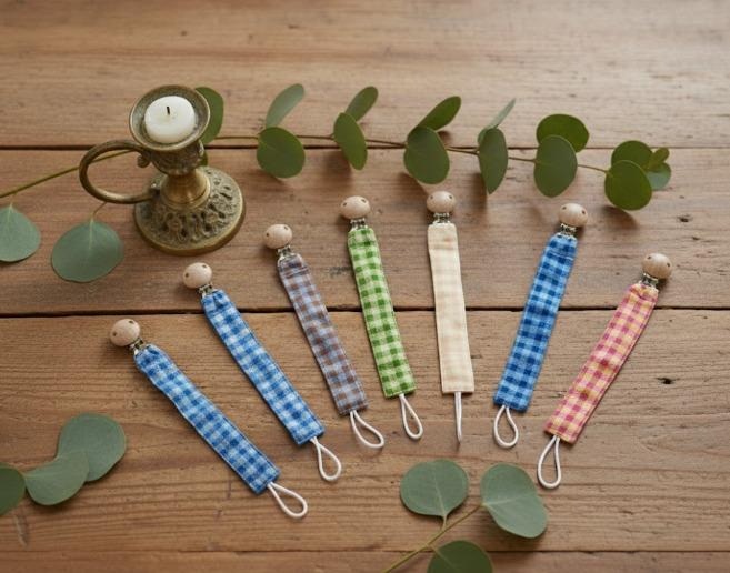 Chupetero de tela  con clip de plástico. Telas 100% algodón.