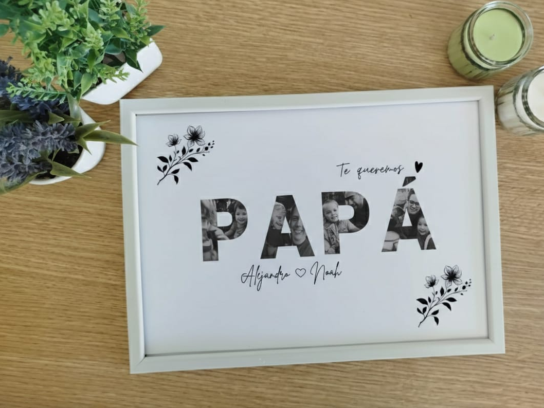 Lámina de fotos personalizada con la palabra "papá".