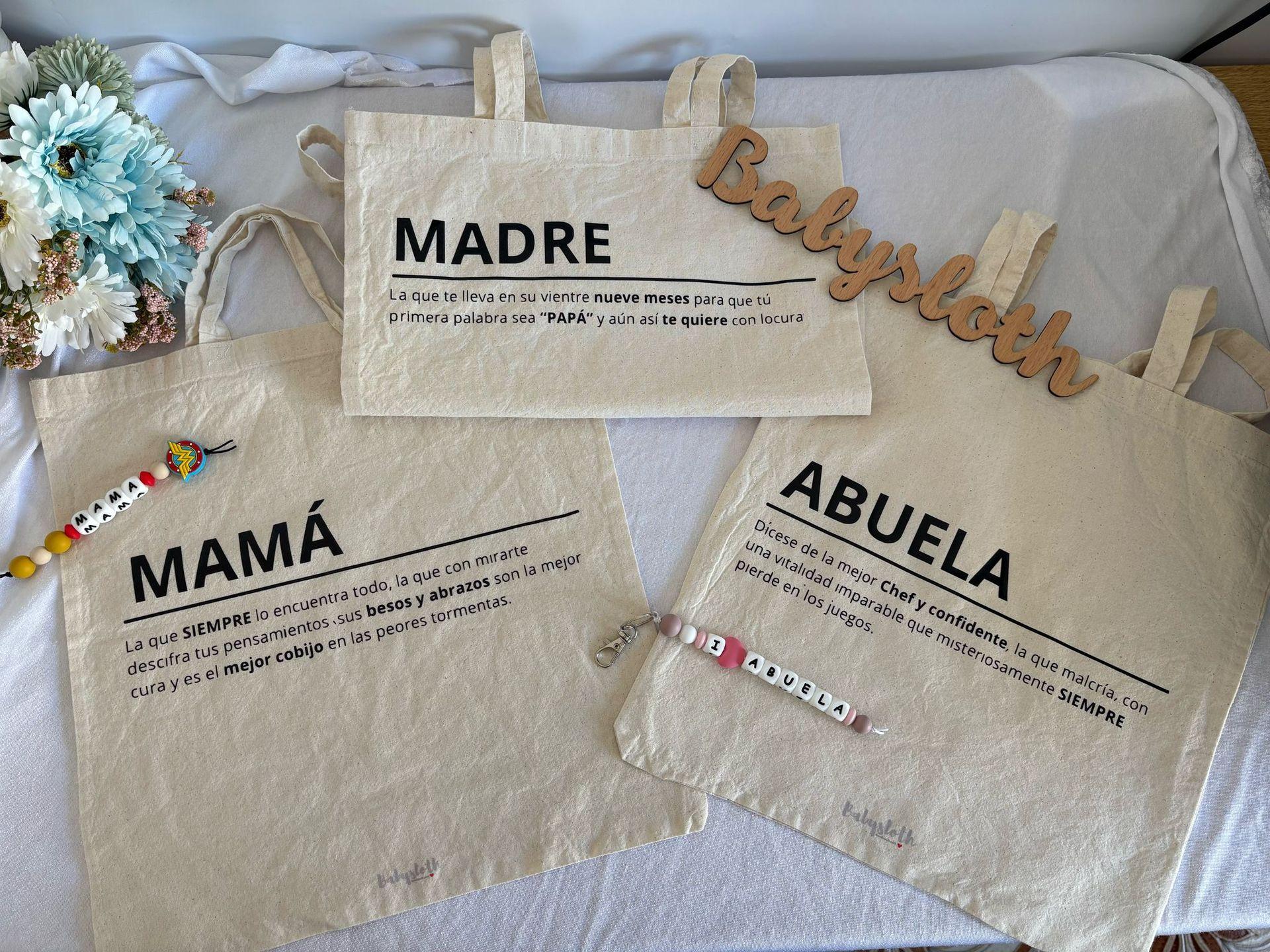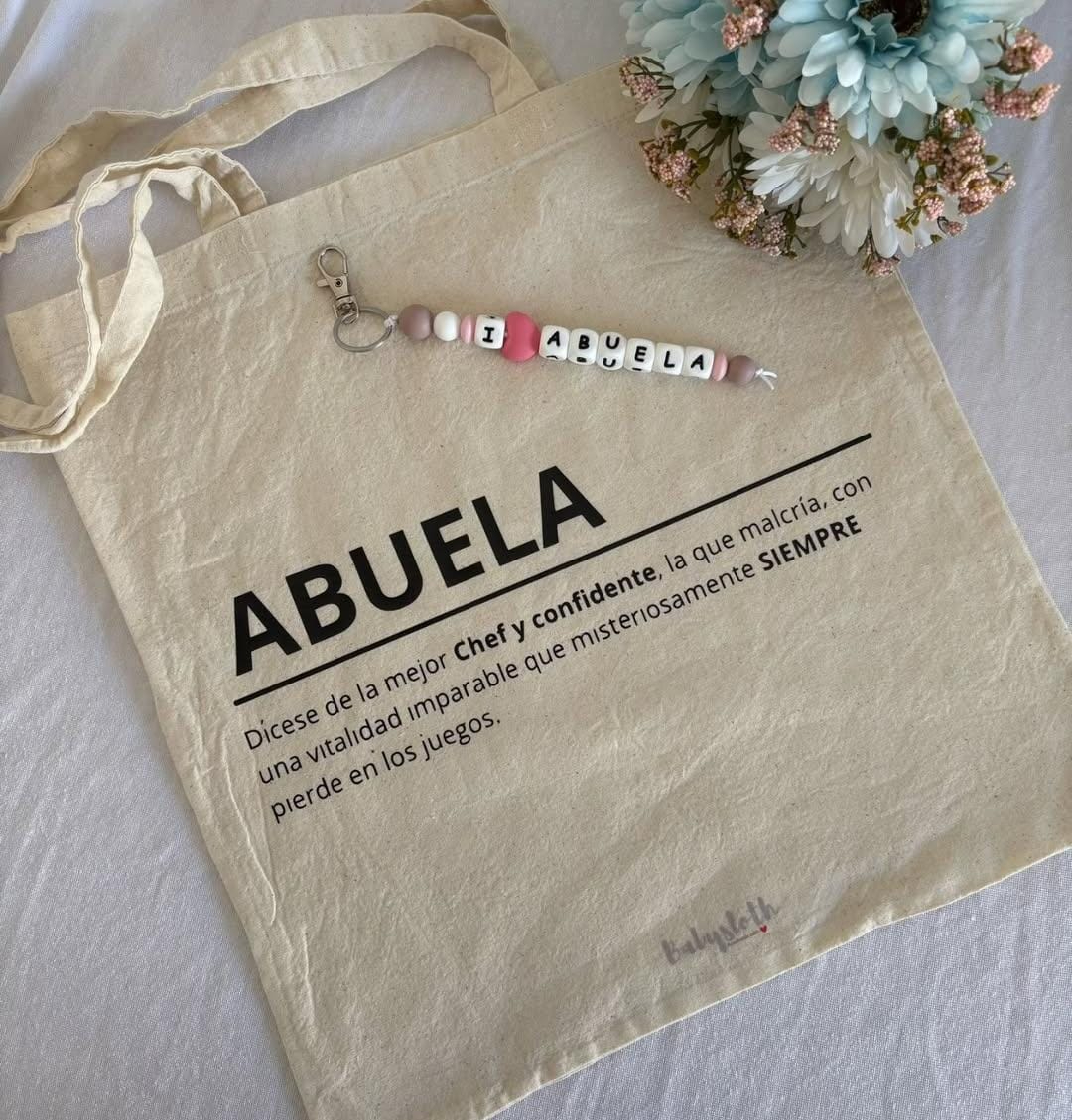 Bolsa 100% algodón de 140g/m2 con frase definición "abuela" en DTF o vinilo textil.