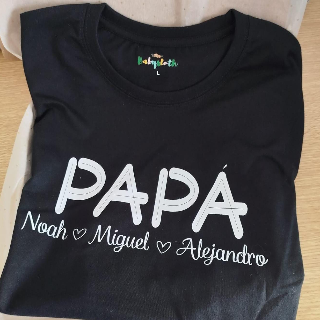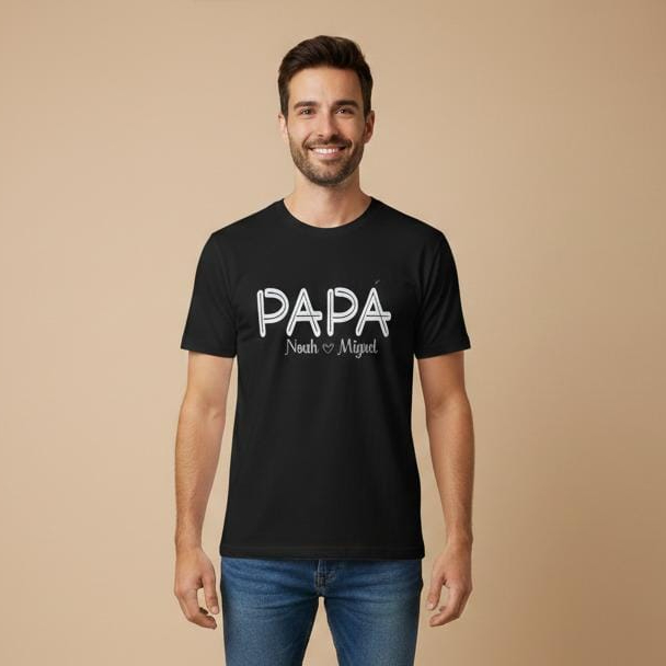 Camiseta personalizada de algodón e impresión con DTF o vinilo textil papá más nombres.