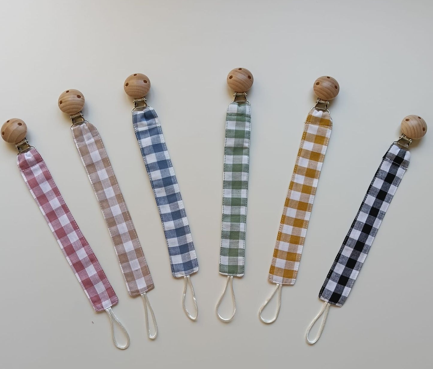 Chupetero de tela  con clip de plástico. Telas 100% algodón.