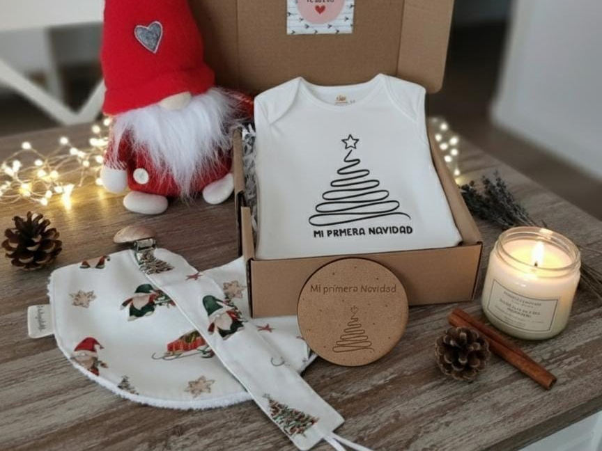 Nuestro Pack "Mi Primera Navidad" es el recuerdo ideal para celebrar este hito y capturar fotografías inolvidables. Diseñado con amor y presentado en una elegante caja de regalo, es la opción perfecta para regalar o para tu propio tesoro.